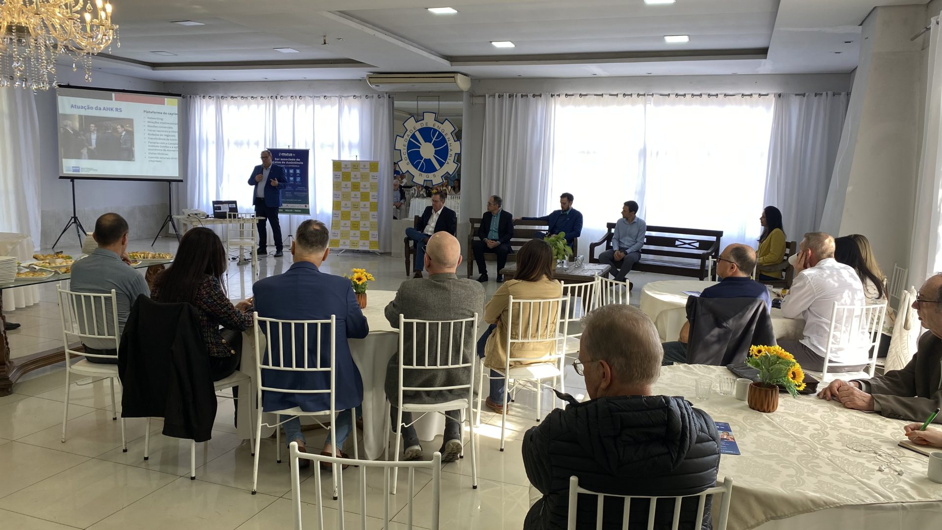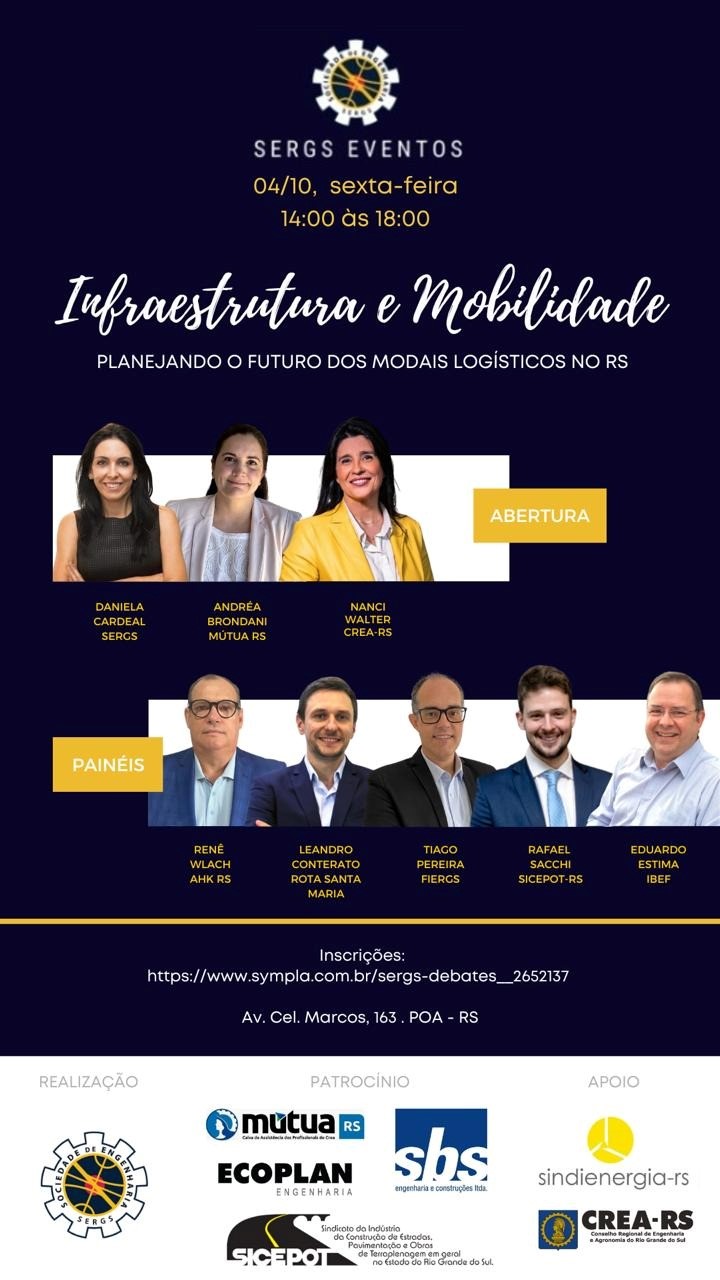 Palestrantes: Renê Wlach - Câmara Brasil Alemanha do RS, Leandro Conterato - Concessionária Rota de Santa Maria, Tiago Pereira - Conselho da Agroindústria – CONAGRO da FIERGS, Rafael Sacchi – SICEPOT e Eduardo Estima - IBEF