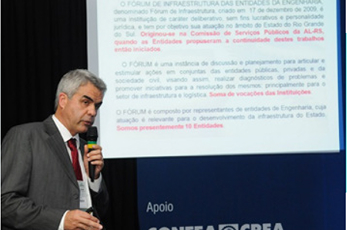 Lidera debates sobre questões ambientais do Lago Guaíba e do Polo Naval. Cria o Fórum de Infraestrutura das Entidades de Engenharia, debate legislações, mantendo o foco na Engenharia para o futuro do RS.
